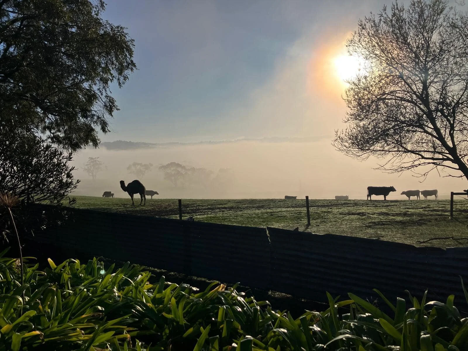 At the heart of Bellevue, a 350-acre working family farm, are our pets and livestock, and you'll meet them all personally with one-on-one hand-feeding sessions: Alana (the orphaned camel), Banjo, Victor, Andy, Belle, Sadie & her new baby cria Rebel (the alpacas), Maggie & The Boys (the sheep) and Bruno (the huge beef steer) who weighs a tonne - literally! Simon & Garfunkel (the miniature goats) and Bruce (the large goat) who especially love treats of apples and carrots, as do our horses. Native birds include iridescent parrots, rosellas, cockatoos, galahs, willy wagtails, kookaburras and magpies. Plus, you may also say g’day to native wildlife (koalas, echidnas, kookaburras and kangaroos) on the walking trails. Guests can also visit a rotary dairy farm where 340 cows are milked.
