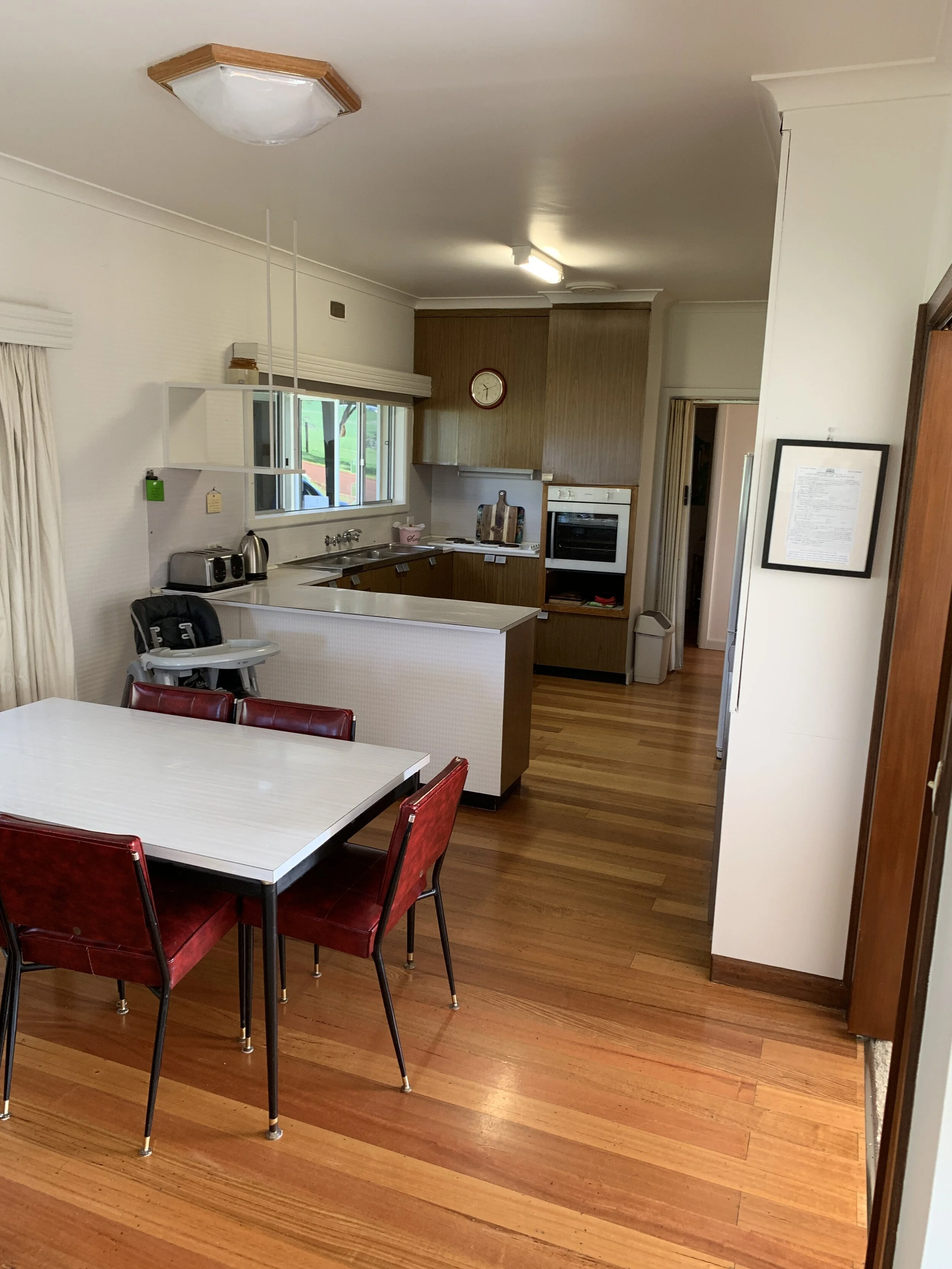 Our fully-self contained farmhouse comfortably houses up to 10 guests in 3 bedrooms + 2 bathrooms. Open-plan lounge, dining and living areas with wood-burning fireplace and also a robust electric heating/cooling system. Proudly solar powered, we also collect our own rainwater. Nestled on a hillside at the highest point of Scotts Creek, we are an authentic 350 acre working farm that has been in the Couch family for five generations.