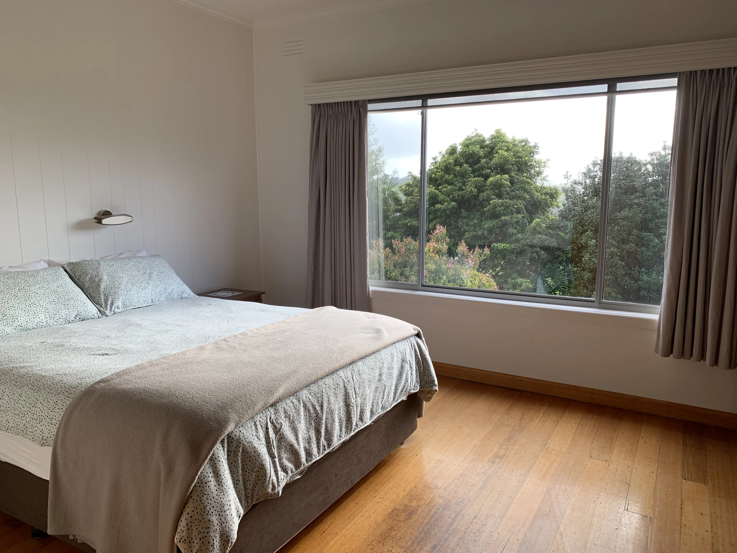 3 bedrooms (1 queen, plus 2 rooms each with 2 x single beds. Two single beds can be turned into a queen if required)