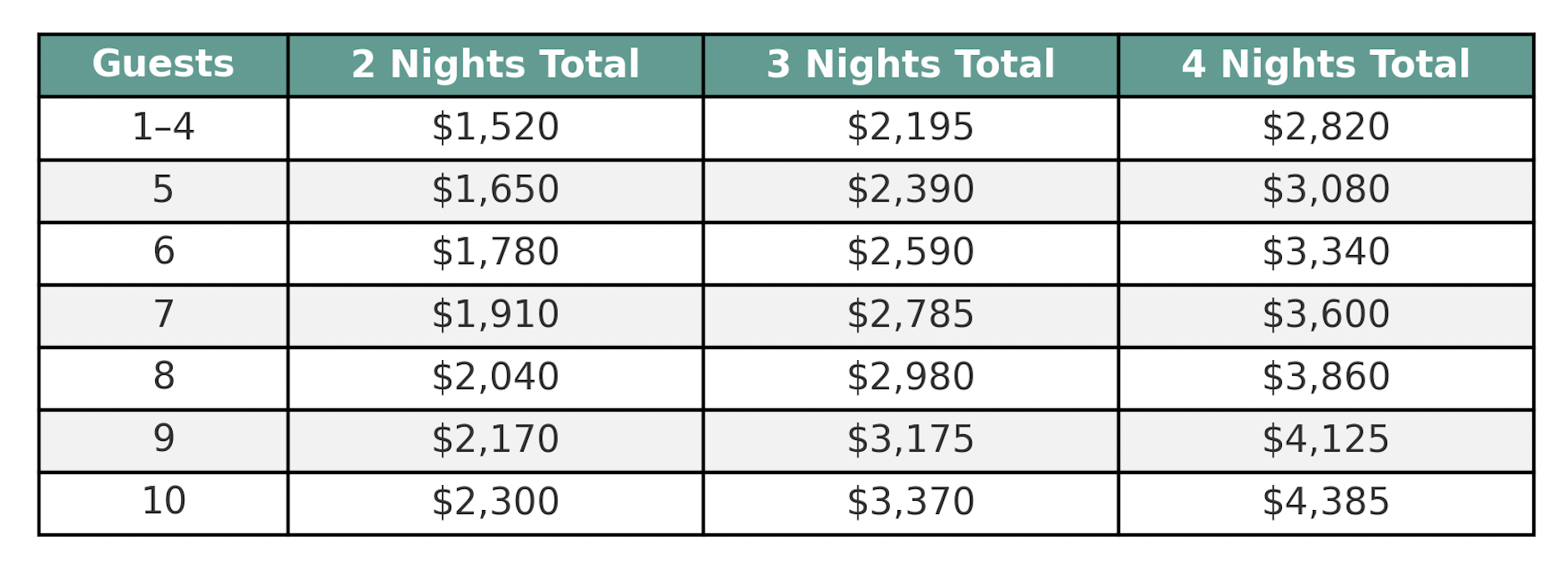 Each guest booking — whether it is for a family of 10 or party of 2 — receives the entire, exclusive use of the Farmstay lodging for themselves and their guests only (ie: we do not combine guests).